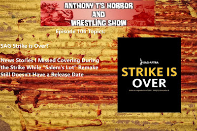 The SAG Strike is over or is it. In this edition, Anthony T talks about the SAG settlement with the major studios and why there seems to be some backlash over this agreement. After that, he talks about all the horror film news he missed during the strike while "Salem's Lot" still doesn't have a release date. Finally in What's Anthony T Watching, he has some quick reviews of recent films that recently hit various streaming networks.
